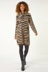 Zebra Print Jacquard Knit Dress from Roman. Unleash your wild side in this stunning zebra jacquard dress. With a chic roll neck and long sleeves, this knitted dress falls gracefully to a flattering knee length. The eye catching zebra pattern adds a touch of animal print flair to your Autumn/Winter wardrobe. Pair it with tights and heeled boots for a trendy and stylish look this season!