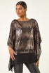Ombre Sequin Mesh Chiffon Top from Roman. Get ready to sparkle and shine with this glamorous mesh sequin top, perfect for the Autumn/Winter season. Adorned with dazzling sequins all over, this round neckline top finishes at the hip with a delicate chiffon hem for an elegant touch. Pair it effortlessly with jeggings and ankle boots for a stylish and chic look that's sure to turn heads wherever you go!