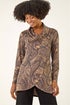 Paisley Print Cowl Neck Stretch Top from Roman. Stay stylish and cosy this Autumn Winter in this paisley print tunic top. The trendy cowl neckline and long sleeves will keep you warm while the stretch jersey fabric ensures a comfortable fit. Pair with wide leg trousers and ankle boots for a complete look!