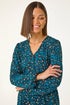 Roman Teal Abstract Printed V-Neck Tunic Top