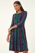Animal Print Panel Stretch Dress from Roman. Unleash your wild side this Autumn Winter season with this stylish animal print dress. Crafted from comfortable stretch jersey fabric, this dress features a classic round neckline and 3/4 length sleeves. The eye-catching wild animal print with panel details adds a touch of flair, while the dress finishes at a flattering knee length. Perfect for everyday wear, pair with tights and ankle boots for a complete look!