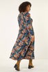 Curve Floral Print Shirred Midi Dress from Roman. Get ready for Autumn Winter in style with this Curve floral print midi dress. Crafted from a comfortable stretch jersey fabric, this dress features a classic round neckline and long sleeves to keep you warm. The stunning floral print and shirred detail add a feminine touch while the a-line shape falls elegantly. Pair with a denim jacket and ankle boots for a stunning fall look that will turn heads wherever you go!