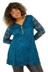 Curve Zip Front Lace Stretch Top from Roman. Look lavishing in lovely lace this season with this Curve lace top. Cut from a comfortable stretch jersey fabric this top features a feminine v-neckline trimmed with a functional tasselled zip fastening and sheer, full-length sleeves. Designed in a flattering swing shape this top is designed to pull on overhead, perfect for those last-minute party plans. Pair with leather trousers and heels to complete the look!