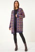 Learn moreGeometric Patterned Cardigan from Roman. Wrap up in style this Autumn Winter with this chic geometric pattern cardigan. Featuring a striking design, this cardigan boasts a trendy edge to edge opening and cosy long sleeves. Perfect for layering over a simple t-shirt and your favourite jeans for a casual yet stylish look.