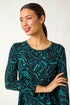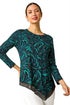 Roman Teal Linear Print Chiffon Hem Stretch Top
