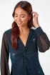 Petite Twist Front Chiffon Sleeve Stretch Top from Roman. Radiate confidence this party season, in this shimmering Petite top. Perfect for special occasions, this piece features a flattering v-neckline with a twist detail and full-length chiffon sleeves with a sparkly contrast cuff. Keeping you comfortable all evening with its stretchy metallic fabric, this pull-on blouse is made to flatter your figure. Wear with faux leather trousers and heels for an effortlessly glamorous Winter party style.
