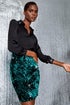 Roman Teal Sequin Embellished Velour Stretch Skirt