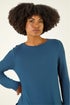 Soft Touch Side Ruffle Top from Roman. Indulge in some stylish comfort with this soft touch ruffle top, a perfect addition to your Autumn/Winter wardrobe. Crafted from a luxurious soft touch jersey fabric, this top features a classic round neckline and elegant long sleeves. The unique ruffle detail at the hips in the side seams adds a touch of feminine flair, making it the perfect top for a casual yet chic look. Pair with jeggings and ankle boots for an effortlessly fashionable outfit!