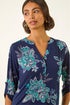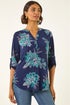 Floral Puff Print Stretch Shirt from Roman. Make a statement this Autumn/Winter season in this fabulous floral print ITY shirt. Featuring a trendy puff print and a flattering notch neck design, this shirt stands out from the crowd. Detailed with chic shoulder pleats and tab fastening on the 3/4 sleeves, this shirt offers both style and comfort. The stretch jersey fabric ensures a lovely fit, while the all-over floral print adds a touch of elegance. Pair with jeans and heeled boots for a fashion-forward look that is sure to turn heads!