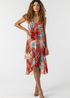 Layered Chiffon Tropical Print Dress from Roman. Dreaming of the tropics all season long in our chic chiffon asymmetric layered dress. Featuring beautiful chiffon layers with an all-over tropical leaf print, fastened with a button and keyhole to the back. This v-necked dress is made from lightweight material making it perfect for summer events this season. Pair with strappy heels and a cover-up for an outfit to take you through to the evening.