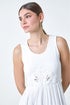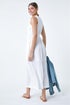 Cotton Blend Lace Detail Midi Dress from Roman. Elevate your everyday wardrobe this Summer wearing this effortlessly elegant maxi dress. The bodice of this dress features intricate lace detailing that contrasts with the breezy cotton skirt whilst the comfortable jersey fabric of the bodice ensures a flattering and flexible fit. With its scoop neckline and sleeveless design, this dress exudes a chic and feminine energy. Style it with wedges or sandals to embody effortless Summer style!