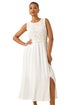 Crochet Bodice Midi Dress from Roman. Achieve effortless elegance in this stunning crochet bodice midi dress. The bodice features intricate crochet detailing, while the viscose crinkle midi skirt adds a touch of relaxed sophistication. With a round neck and sleeveless style, this dress is perfect for sunny days and warm evenings alike. Pair it with sandals and a denim jacket for a chic Spring/Summer look that is both stylish and comfortable.
