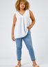 Curve V-Neck Pleat Tank Top from Roman. A classic sleeveless vest top style that is a fabulous addition to your basics collection. Featuring a v-neckline, this sleeveless single pleat detailed tank top looks great paired with just about anything! Style this wardrobe must-have with cropped stretch trousers or jeans for those warm sunny days out or a sunny getaway when you’re ready for your next trip abroad!