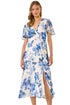 Roman White Floral Print V-Neck Midi Dress