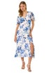 Floral Print V-Neck Midi Dress from Roman. Add a touch of elegance to your wardrobe with this stunning floral print midi dress. The soft chiffon woven fabric drapes beautifully, featuring a feminine v-neckline and short sleeves. Adorned with an all-over floral print, this dress is perfect for those special occasions in the Spring and Summer seasons. Pair it with strapped heels and a trendy bolero for a polished and sophisticated outfit.