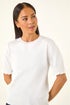 Petite Shirred Sleeve Knit Top from Roman. Get ready for a stylish Spring Summer season with this classic Petite knitted top. Effortlessly chic, this top features a classic round neck and short sleeves with shirred elastic detail for an added touch of style. The ribbed detail on the hem adds a modern twist, while the comfortable knitted fabric ensures all-day wear. Style with a denim jacket and jeggings for a complete trendy outfit!