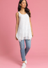 White Stretch Lace Hanky Hem Vest Top from Roman. A feminine take on the classic camisole, this pretty top is sure to become a Spring-Summer staple. With a delicate lace overlay and a hanky hemline, this pretty vest top looks great paired with pale coloured cropped trousers. Ideal to take with you on holiday, this breezy top can be dressed up and down to suit any occasion.