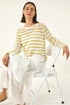 Stripe Crew Neck Knit Jumper from Roman. Stay stylish and cosy with this versatile stripe light knit jumper. The relaxed fit and soft fabric make it perfect for everyday wear. Complete with a flattering slash neck and long sleeves, this jumper is a wardrobe essential for the Spring/Summer season. Pair it with your favourite jeans and trainers for a casual chic look that will take you from day to night effortlessly!