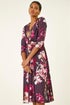 Floral Crossover Stretch Midi Dress from Roman. Embrace the floral trend this Autumn/Winter with this stunning midi dress. Crafted from stretch fabric, this dress features a flattering V-neck and elegant 3/4 sleeves. The highlight of this dress is the crossover detail at the waist, adding an extra touch of sophistication to the look. Pair with tights and heeled boots for a chic ensemble that transitions seamlessly from day to night.