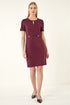 Front Keyhole Belted Dress from Roman. Get ready to make a stylish statement with this keyhole detail short dress. Designed with a flattering round neck, short sleeves, and a chic belted waist, this dress is perfect for embracing sleek officewear. Cut in a fitted shape, it exudes sophisticated elegance. Pair with heels and sunglasses for a polished Spring/Summer look!