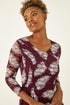 Leaf Print Lace Stretch Dress from Roman. Get ready to make a statement in this elegant lace dress adorned with a beautiful leaf print. Cut from a stretch lace fabric, this knee-length dress features a classic round neckline and 3/4 sleeves for a timeless look. The flattering fit ensures you look fabulous for any occasion. Pair with a denim jacket and ankle boots for a stunning autumnal ensemble!