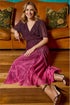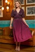 Roman Wine Ombre Shimmer Plisse Midi Dress