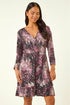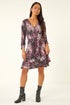 Petite Abstract Wrap Stretch Dress from Roman. Get ready to stand out in style this season with this stunning Petite abstract print wrap dress. The flattering v-neckline and elegant wrap style add a touch of sophistication to your wardrobe. Ruched 3/4 sleeves along with the comfortable stretch jersey fabric, ensure a perfect fit. Falling at knee length with delicate frill details, this dress is perfect for any occasion. Pair with tights and ankle boots!