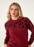 Roman Wine Petite Animal Print Longline Stretch Jumper