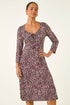 Petite Animal Print Ruched Stretch Midi Dress from Roman. Make a statement this Autumn by slipping into this vibrant floral midi dress. Crafted from a stretch jersey fabric, this dress features a trendy v-neckline and chic 3/4 length sleeves. The blooming floral print adds a touch of femininity, while the gathered bust and elegant front split elevate the style. Perfect for any occasion, this dress falls gracefully at a midi length. Pair with a denim jacket and ankle boots for a stunning look!