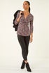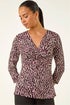 Petite Animal Print Twist Front Top from Roman. Throw some fierce vibes into your wardrobe with this stunning knot front top, perfect for the autumn winter season. The animal print design adds a touch of personality to the classic v-neckline and 3/4 sleeve style. The trendy knot front detail elevates this top to a chic statement piece. Pair it effortlessly with skinny jeans and ankle boots for a stylish on-the-go look!