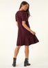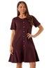 Petite Flute Hem Stretch Dress from Roman. Get ready to make a style statement in our Petite knee-length dress. Crafted from a comfortable stretch ponte fabric, this shift dress features a classic round neckline and short sleeves. Adding a touch of flair are button-through details and a tiered flute hem, giving it a playful twist. Perfect for the Autumn Winter season, simply style this dress with tights and ankle boots for a sophisticated outfit!
