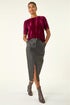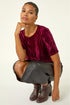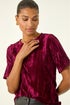 Pleated Velvet Stretch Top from Roman. Get ready to add a touch of glamour to your Autumn/Winter wardrobe with this pleated velvet top. Crafted from a luxurious velvet touch jersey stretch fabric, this top exudes elegance and style. Featuring short sleeves and a flattering round neckline, this top finishes at the hip for a chic silhouette. Pair with your favourite jeans and ankle boots for a sophisticated and on-trend look!