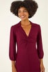 Textured Collared Twist Front Dress from Roman. Get ready to make a statement this Autumn/Winter with this textured twist front midi dress. Featuring a unique collared V-neck and elegant 3/4 sleeves with elasticated cuffs, this dress exudes sophistication. The eye-catching twist detail at the front adds a touch of flair, making it perfect for any special occasion. Pair with tights and ankle boots for a chic and stylish look that will turn heads wherever you go!