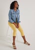 Want the look of jeans but the comfort of leggings? Look no further and meet the Rosie jeggings collection. Made in an easy stretch fabric with a pull-on design, these yellow skinny fit jeggings have an elasticated high rise cut and silver rivets, as well as two front mock pockets and two functional back pockets. What's more, their cropped fit makes them perfect for summer dressing. Model Height: 5ft 9.