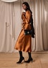 Introducing our elegant Rust Satin Belted Midi Dress, a perfect blend of style and comfort. Crafted from luxurious satin fabric, this dress boasts a rich rust hue that exudes warmth and sophistication. The belted waist accentuates your figure while offering adjustable comfort, ensuring a flattering fit for every body type. The midi length paired with long sleeves makes it versatile for both day and night occasions. Pair it with your favourite heels or boots for a polished look.