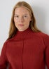Our rust seam knitted jumper is a perfect cosy and chic jumper to keep you warm and looking stylish all season long. Designed with a flattering seam front for a visually appealing style and crafted from a rust colour that adds a touch of warmth and sophistication to your outfit, this jumper is the perfect addition to your wardrobe. air with your favourite denim and ankle boots for a casual and effortless look or dress it up with a skirt, tights, and heels for a night out or special event.