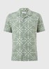 Embrace a relaxed yet detailed style with the Sage Crinkle Geometric Tile Printed Shirt. This eye-catching shirt features a subtle all-over geometric tile print against a soothing sage green background, adding visual depth. The fabric is intentionally designed with a crinkle texture, which not only adds a unique tactile dimension but also makes it highly practical for travel as it requires minimal ironing.