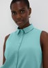 Learn moreCrafted in a serene sage green hue, this sleeveless shirt combines style and comfort effortlessly. The sage green colour exudes sophistication, making it suitable for both casual outings and more polished occasions. Whether you're heading to brunch or a garden party, this shirt has you covered. The sleeveless silhouette keeps you cool during warm days, perfect for layering under a lightweight cardigan or wearing on its own for a breezy look. Made from a breathable blend, this shirt ensures comfort throughout the day, allowing you to move freely. For an effortless summer ensemble, pair it with white linen trousers, add statement earrings and sandals for a touch of elegance.