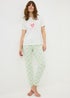 Unwind in comfort with this charming pyjama set, thoughtfully crafted from 100% cotton for a soft feel. The regular fit short-sleeved crew neck top is finished with the aptly captioned “Best Dog Mum” slogan, adding a playful touch to your nightwear. Complementing the look, the sage green cuffed pyjama bottoms feature an all-over heart print and an elasticated waistband for a flexible, comfortable fit.