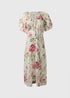 Sage Green Floral Puff Sleeve Tea Midi Dress