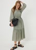 Sage Green Raglan Shirt Midi Dress