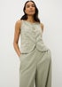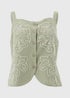 Light and breezy, this sage green co-ord waistcoat top is crafted from a soft linen, viscose, and cotton blend for effortless comfort. Intricate embroidery and a button-front design add subtle statement details, while slim straps and a curved hem create a flattering silhouette.