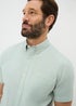 Fresh, easy and ready for everyday dressing, this sage green shirt is crafted from 100% cotton for breathable comfort. Designed with short sleeves, a button-down collar, a neat button front and a single chest pocket, it delivers a clean, relaxed look that still feels refined. Lightweight, versatile and cut with a regular fit, it’s ideal for warm days or layered styling.
