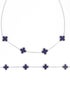 Each piece features four double-sided blue clover pendants along the chain, offering a pop of colour and a timeless symbol of luck and positivity. Whether worn together for a polished, matching look or styled separately, this set brings effortless charm and versatility to any outfit.
