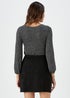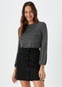 Learn moreGo all out on glam this season with this gorgeous top. cut with long sleeves for an added dash of snug this winter. Perfect for your next party, the silver glitter detailing all over ensures an eye-catching finish. Partner your look with trousers and your favourite boots. Model Height: 5ft 6 1/2.