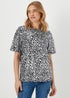 Make a fierce fashion statement with our stunning top - this eye-catching design features a bold silver leopard print that will surely turn heads. The foil detailing adds a touch of glam and makes it perfect for a night out. Meanwhile, the relaxed fit and soft fabric ensure comfort, and the flattering sleeve length adds a stylish touch. Pair it with jeans and heels for a chic and confident look. Be the queen of the jungle in this fabulous top.