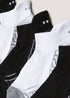 Learn moreThe ideal accessory for sports or gym-going, these soft and stretchy trainer socks will support the ankle and keep feet feeling cushioned and comfortable - plus mesh vent panels provide a long-lasting fresh, dry feeling. In a handy five pack, the socks are complete in a black and white monochrome colour palette.