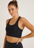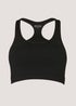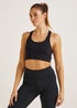 Sweat it out in this black racer back sports bra by Souluxe, crafted from stretchy fabric with removable padded cups. A great base layer option, it's made from antibacterial, sweat-wicking fabric that'll help you stay cool and comfortable during your workout. Model Height: 5ft 9.