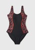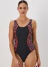 Dive into style with our Black Swimsuit from the Souluxe collection. This sleek swimwear features striking red and pink petal side panels, adding a touch of vibrant elegance to your poolside look. Enjoy both style and comfort as you make a statement at the beach or by the pool in this unique piece.