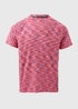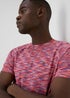 piece exudes sophistication and panache. In a vibrant pink, orange and purple hues with a captivating space dye pattern, with a regular fit for a flattering and effortless silhouette. Wear to your next workout and pair with black shorts and white crisp trainers.